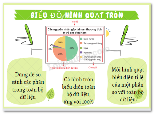 Biểu đồ hình quạt tròn dùng để so sánh các phần trong toàn bộ dữ liệu