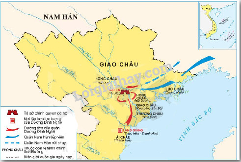 - Năm 931, thuộc tướng cũ của họ Khúc là Dương Đình Nghệ kéo quân từ Thanh Hóa ra Bắc đánh đuổi quân Nam Hán.