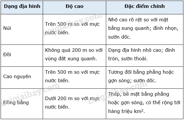 1. Các dạng địa hình chính