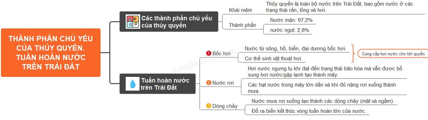 Sơ đồ tư duy các thành phần chủ yếu của thủy quyển. Tuần hoàn nước trên Trái Đất