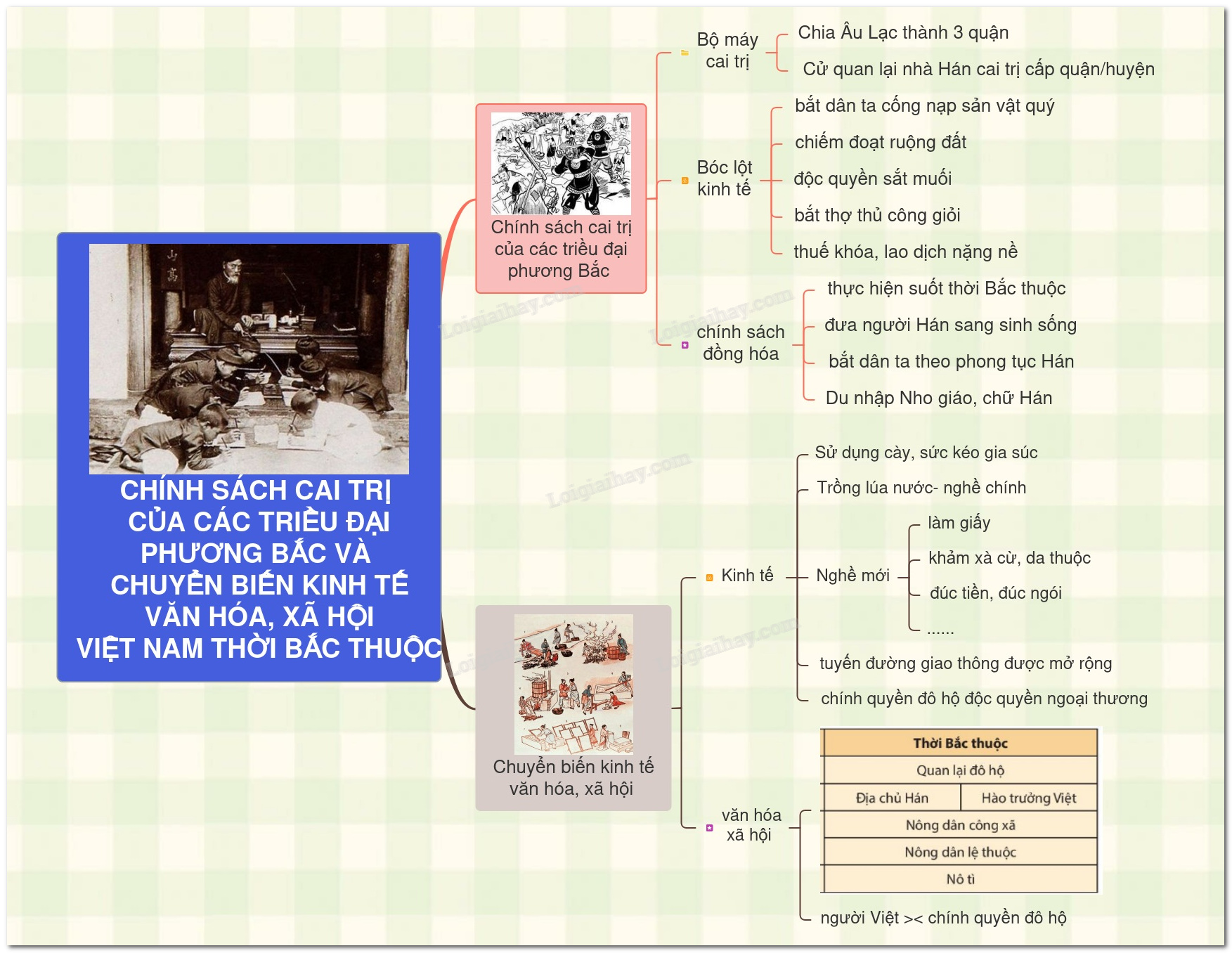 Sơ đồ tư duy chính sách cai trị của các triều đại phong kiến phương Bắc và sự chuyển biến của Việt Nam thời kì Bắc thuộc