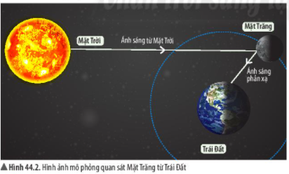 - Ánh sáng từ Mặt Trăng mà ta nhìn thấy có được là do ánh sáng Mặt Trời chiếu tới Mặt Trăng phản xạ xuống Trái Đất.