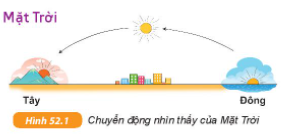 Quan sát bầu trời, chúng ta thấy buổi sáng Mặt Trời mọc ở hướng Đông, sau đó chuyển động ngang qua bầu trời để đến buổi chiều lặn ở hướng Tây.