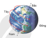 Ban ngày chúng ta thấy Mặt Trời mọc ở hướng Đông, lặn ở hướng Tây là do Trái Đất quay quanh trục của nó từ Tây sang Đông.