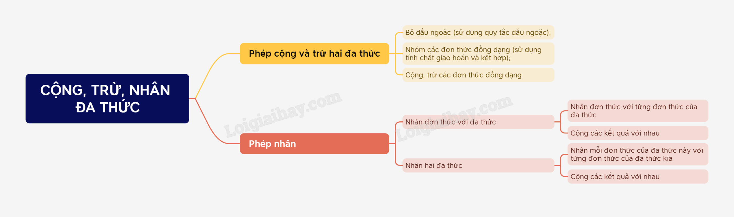 Để nhân hai đa thức, ta nhân từng hạng tử của đa thức này với đa thức kia, rồi cộng các kết quả với nhau.