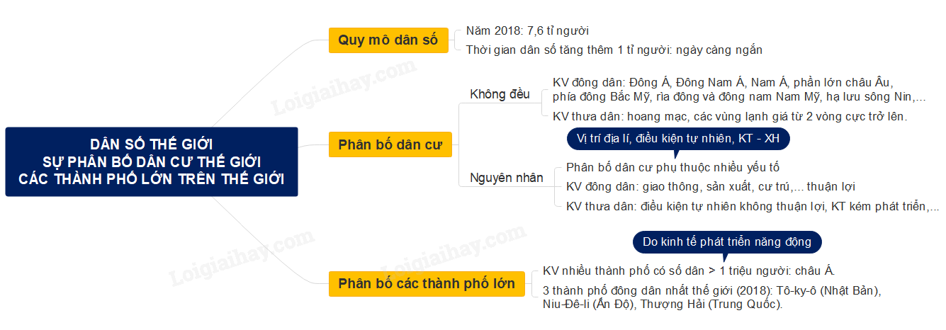 Sơ đồ tư duy dân số thế giới. Sự phân bố dân cư thế giới. Các thành phố lớn trên thế giới