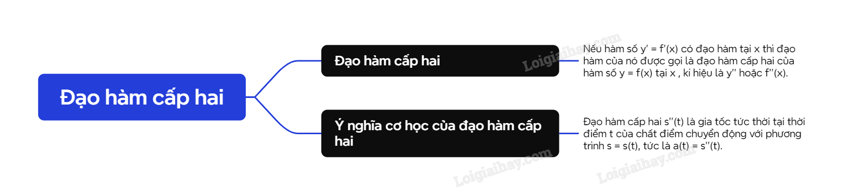 | Đạo hàm cấp hai s’’(t) là gia tốc tức thời tại thời điểm t của chất điểm chuyển động với phương trình s = s(t), tức là a(t) = s’’(t). |