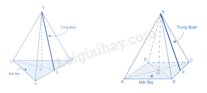 Diện tích xung quanh, kí hiệu là \({S_{xq}}\) của hình chóp tam giác đều hoặc hình chóp tứ giác đều được tính theo công thức: