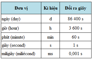 - Đơn vị đo thời gian là giây, kí hiệu là: s.