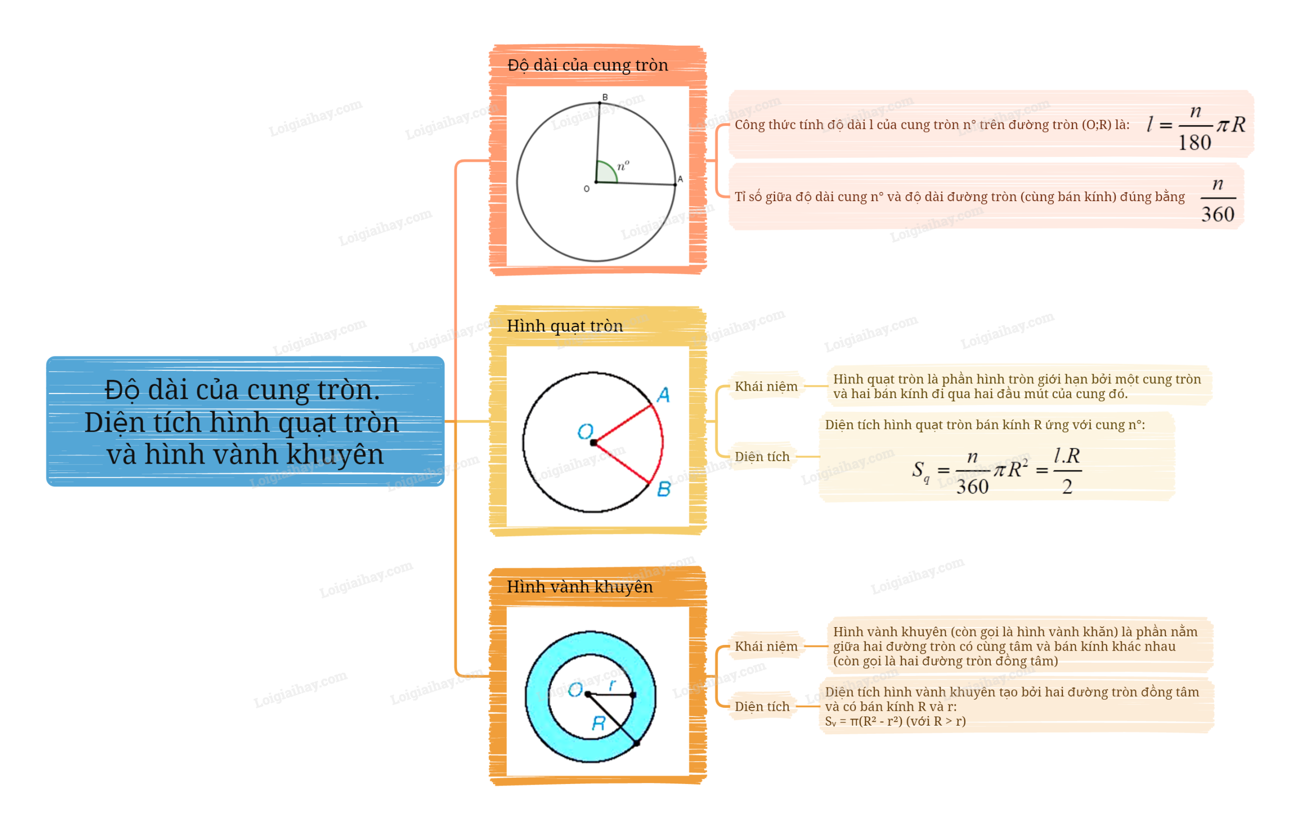 Tỉ số giữa độ dài cung \({n^o}\) và độ dài đường tròn (cùng bán kính) đúng bằng \(\frac{n}{{360}}\).