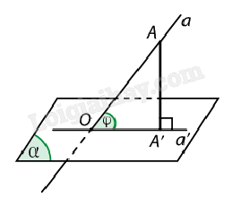 | Cho đường thẳng a và mặt phẳng (α). Nếu a vuông góc với (α) thì góc giữa a và (α) bằng \({90^o}\). Nếu a không vuông góc với (α) thì góc giữa a và (α) là góc giữa a và hình chiếu a' của a trên (α). |
