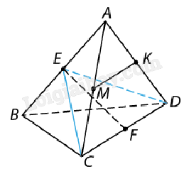 Bài 2: Cho tứ diện đều ABCD có cạnh bằng a. Gọi E, F, M, K lần lượt là trung điểm của AB, CD, AC và AD. Chứng minh rằng \(EF \bot MK\).