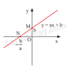 - Khi vẽ đồ thị của hàm số y = ax + b (a\( \ne \)0), người ta thường vẽ đường thẳng đi qua hai điểm M(0;b) thuộc trục tung Oy và điểm \(N\left( {\frac{{ - b}}{a};0} \right)\) thuộc trục hoành Ox.