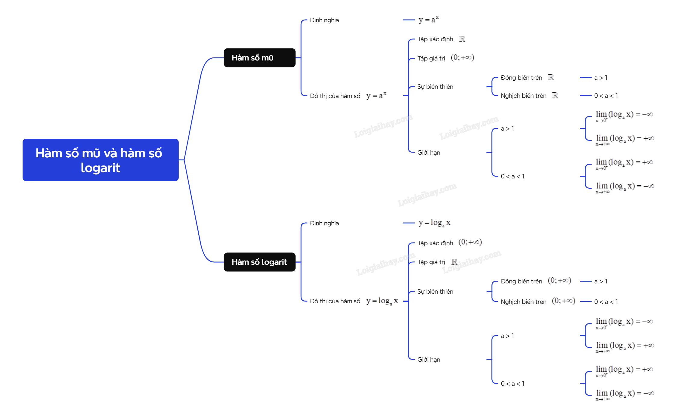 | Cho a là một số thực dương và khác 1. Hàm số \(y = {a^x}\) được gọi là hàm số mũ cơ số a. |