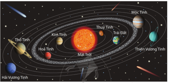 - Hệ Mặt Trời bao gồm Mặt Trời và tám hành tinh: Thủy tinh, Kim tinh, Trái Đất, Hỏa tinh, Mộc tinh, Thổ tinh, Thiên Vương tinh và Hải Vương tinh.
