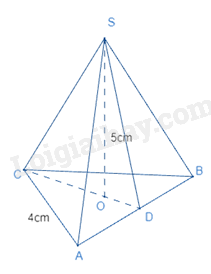 \(CD = \sqrt {{4^2} - {{\left( {\frac{4}{2}} \right)}^2}} = 2\sqrt 3 (cm)\)