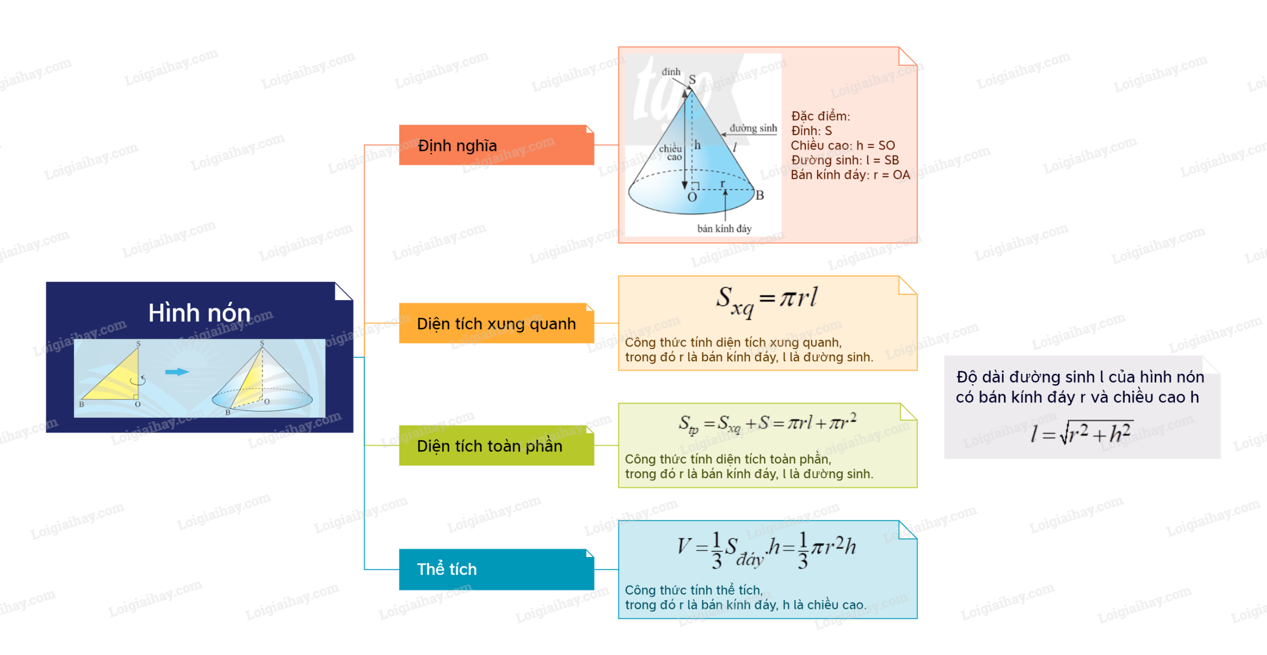 Chú ý: Độ dài đường sinh l của hình nón có bán kính đáy r và chiều cao h được tính bởi công thức: