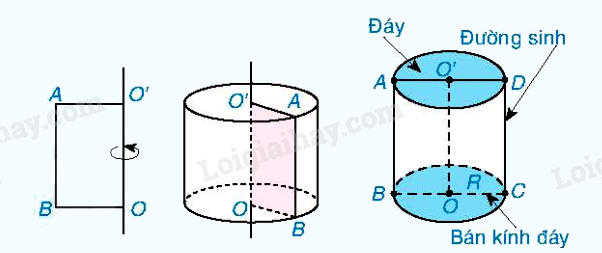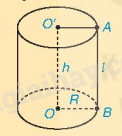 Một số yếu tố của hình trụ: Chiều cao: \(h = O'O\). Bán kính đáy: \(R = OB\). Đường sinh: \(l = AB\). |