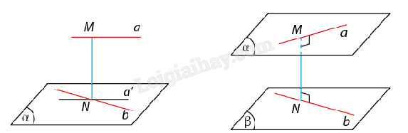 Đường thẳng Δ cắt hai đường thẳng chéo nhau a, b và cùng vuông góc với mỗi đường thẳng ấy được gọi là đường vuông góc chung của a và b. Nếu đường vuông góc chung Δ cắt hai đường thẳng chéo nhau a, b lần lượt tại M, N thì độ dài đoạn MN gọi là khoảng cách giữa hai đường thẳng chéo nhau a và b, kí hiệu d(a,b). |