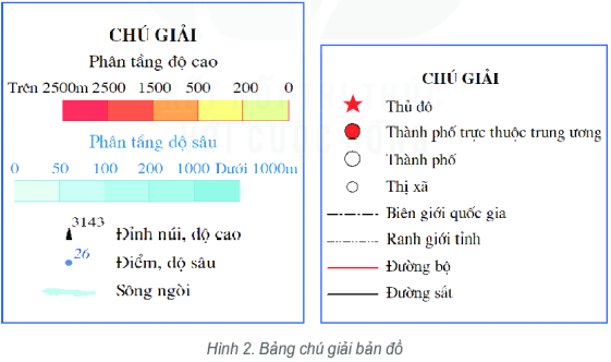 - Đọc kí hiệu trong bảng chú giải để nhận biết các đối tượng trên bản đồ.