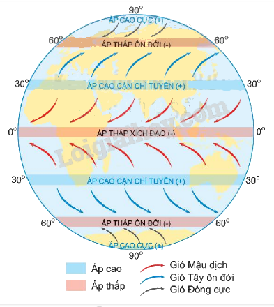 - Trên bề mặt Trái Đất, khí áp được phân bố thành những đai áp cao và đai áp thấp từ Xích đạo đến cực.