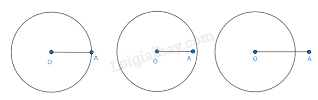 - Điểm A nằm ngoài đường tròn (O; R) nếu OA > R.