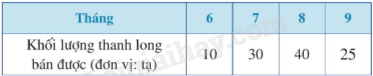 Ví dụ: Bảng thống kê số lượng thanh long bán được trong các tháng 6, 7, 8, 9 là:
