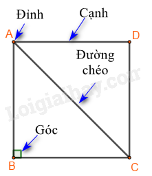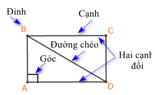 - Bốn góc ở đỉnh A, B, C, D bằng nhau và bằng góc vuông.