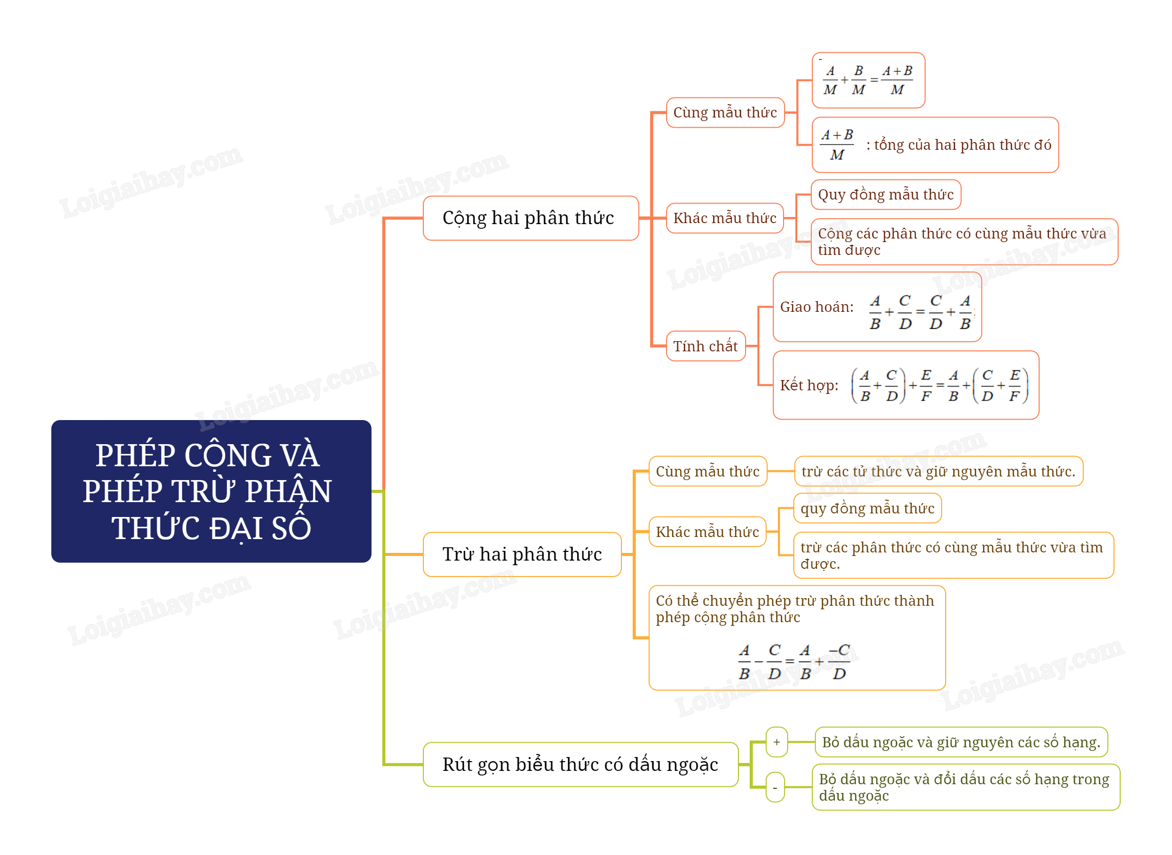 Biểu thức gồm các phép tính cộng, trừ phân thức cũng có thể xem là chỉ gồm các phép cộng phân thức vì trừ một phân thức cũng là cộng với phân thức đối của phân thức đó.