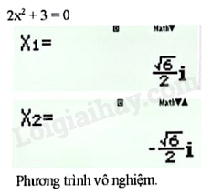Đối với phương trình bậc hai vô nghiệm, ta nhận được kết quả hiển thị trên màn hình như sau: