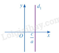- Mỗi nghiệm của phương trình \(ax + 0y = c\left( {a \ne 0} \right)\) được biểu diễn bởi điểm có tọa độ \(\left( {\frac{c}{a};{y_0}} \right)\) \(\left( {{y_0} \in \mathbb{R}} \right)\) nằm trên đường thẳng \({d_1}:x = \frac{c}{a}\). Đường thẳng \({d_1}\) là đường thẳng đi qua điểm \(\frac{c}{a}\) trên trục Ox và vuông góc với trục Ox.