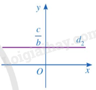 - Mỗi nghiệm của phương trình \(0x + by = c\left( {b \ne 0} \right)\) được biểu diễn bởi một điểm có tọa độ \(\left( {{x_0};\frac{c}{b}} \right)\left( {{x_0} \in \mathbb{R}} \right)\) nằm trên đường thẳng \({d_2}:y = \frac{c}{b}\). Đường thẳng \({d_2}\) là đường thẳng đi qua điểm \(\frac{c}{b}\) trên trục Oy và vuông góc với trục Oy.