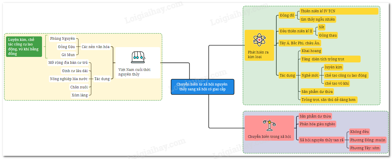 Sơ đồ tư duy Chuyển biến từ xã hội nguyên thủy sang xã hội có giai cấp