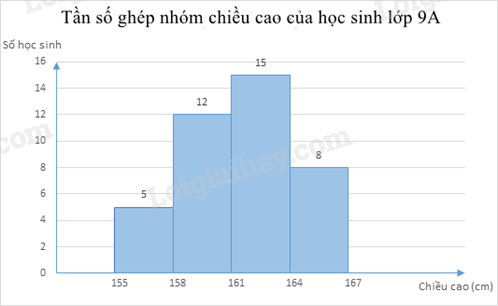 Ví dụ: Biểu đồ tần số ghép nhóm chiều cao của học sinh lớp 9A: