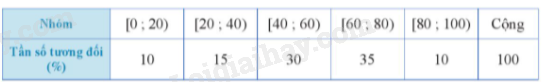 Ví dụ: Bảng tần số tương đối ghép nhóm của mẫu số liệu thống kê số lượng người đến đọc sách trong 100 ngày liên tiếp của một thư viện.