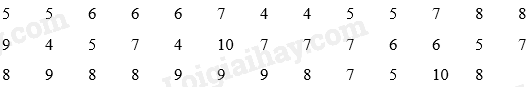 Số anh, chị, em ruột là \({x_1} = 0;{x_2} = 1;{x_3} = 2;{x_4} = 3\) tương ứng với \({m_1} = 8;{m_2} = 12;{m_3} = 6,{m_4} = 4\).