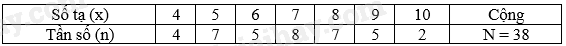 Trong 38 số liệu thống kê ở trên có 7 giá trị khác nhau là: