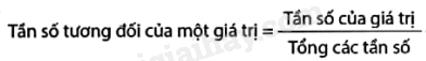 - Trong một mẫu dữ liệu, tổng các tần số tương đối luôn bằng 1 nếu chúng được viết ở dạng thương của \({n_i}\) và \(N\), và luôn luôn bằng 100% nếu chúng được viết ở dạng phần trăm.