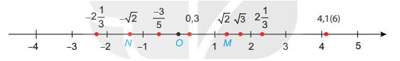 + Các điểm nằm phía dưới gốc O biểu diễn số hữu tỉ âm; các điểm nằm phía trên gốc O biểu diễn số hữu tỉ dương.