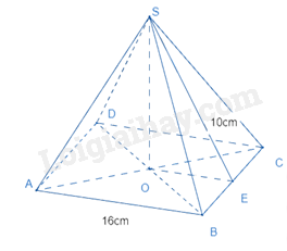 Chiều cao của hình chóp là: \(\sqrt {{{10}^2} - {{\left( {\frac{{16}}{2}} \right)}^2}} = \sqrt {100 - 64} = \sqrt {36} = 6(cm)\)