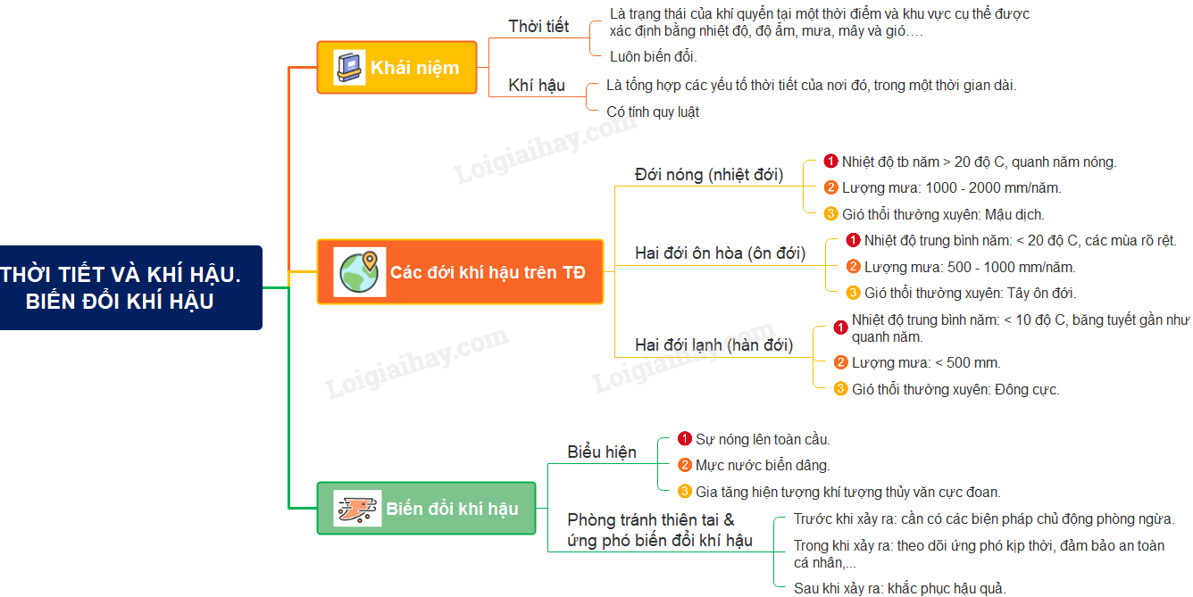 Sơ đồ tư duy thời tiết và khí hậu. Biến đổi khí hậu