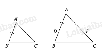 \(\begin{array}{l}\Delta ABC,\Delta A'B'C',\frac{{A'B'}}{{AB}} = \frac{{B'C'}}{{BC}} = \frac{{A'C'}}{{AC}}\\ \Rightarrow \Delta A'B'C' \sim \Delta ABC\,(c.c.c)\end{array}\)