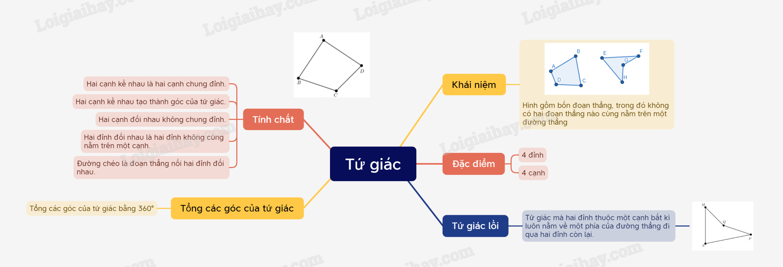 Ví dụ: ABCD là tứ giác lồi, EFGH không phải là tứ giác lồi.