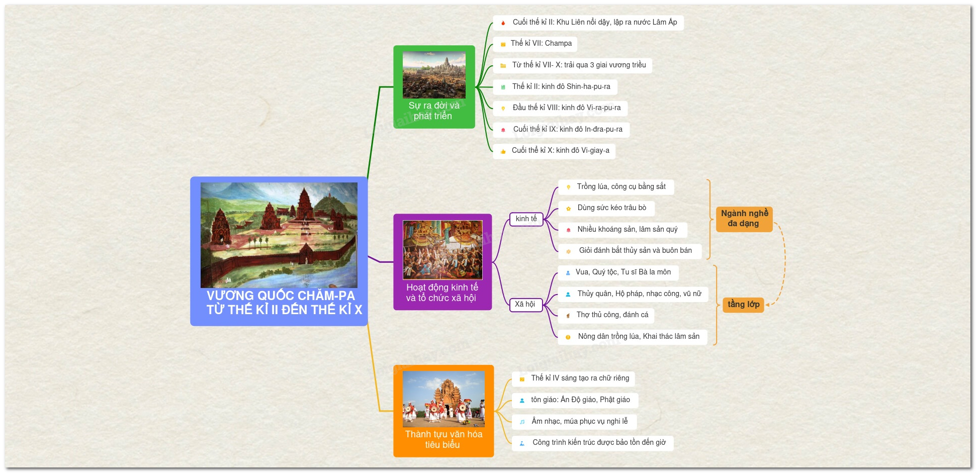 Sơ đồ tư duy vương quốc Chăm-pa từ thế kỉ II đến thế kỉ X