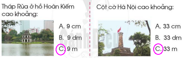 b) Quan sát hình vẽ để khoanh vào số đo thích hợp.