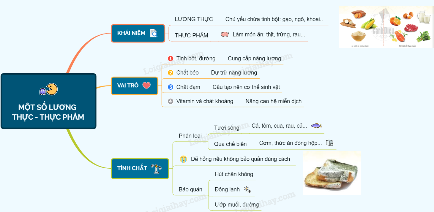 Lý thuyết Một số lương thực - thực phẩm thông dụng KHTN 6 Cánh Diều ngắn gọn, đầy đủ, dễ hiểu