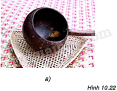 Sọ dừa được xem là có dạng hình cầu. Người ta cắt sọ dừa khô để làm gáo dừa (H.10.22a). Em thấy miệng gáo có dạng hình gì?