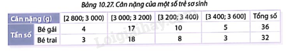 Bảng 10.27 biểu diễn kết quả thống kê của một bệnh viện về cân nặng của một số trẻ sơ sinh.