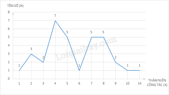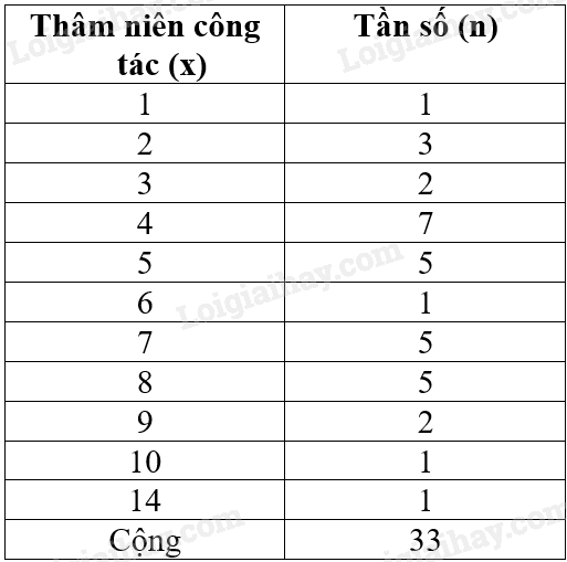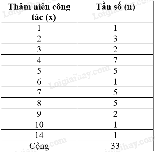 Thống kê thâm niên công tác (đơn vị: năm) của 33 nhân viên ở một công sở như sau: