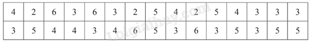 b) Bảng tần số biểu diễn tần số của mỗi giá trị trong mẫu dữ liệu gồm hai dòng, dòng trên ghi các giá trị khác nhau của mẫu dữ liệu, dòng dưới ghi các tần số tương ứng với mỗi giá trị đó.